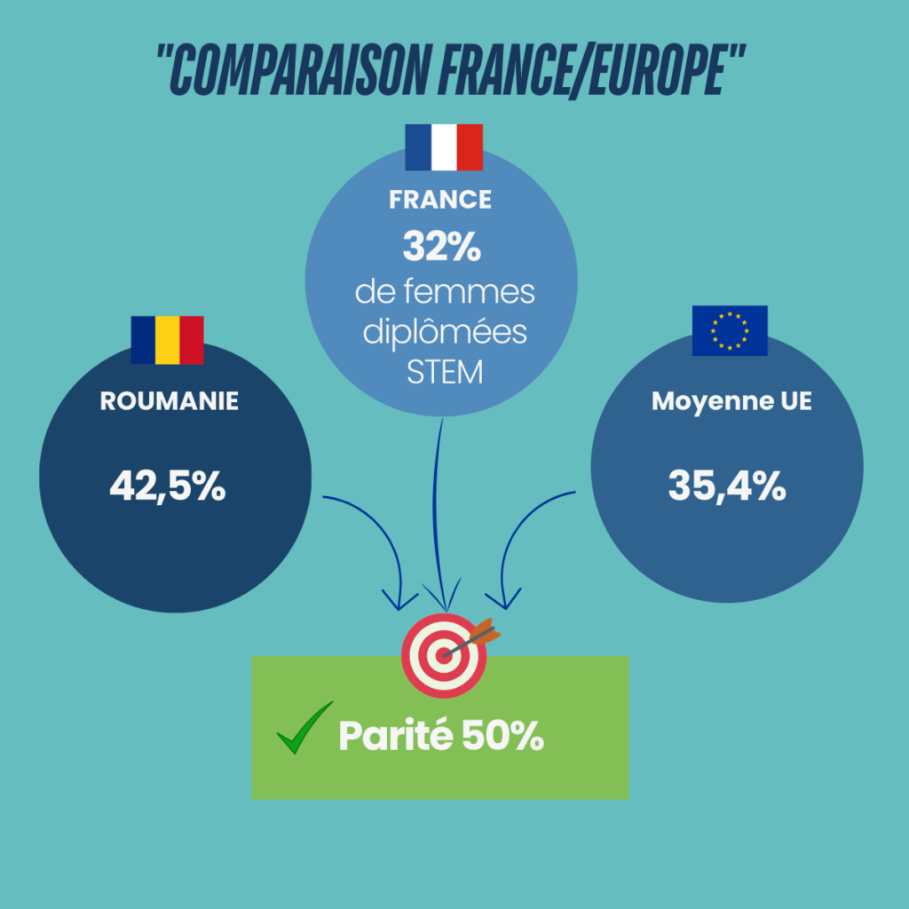 – En France, à peine 32% des diplômés en STEM (Sciences, Technologie, Ingénierie, Mathématiques) sont des femmes